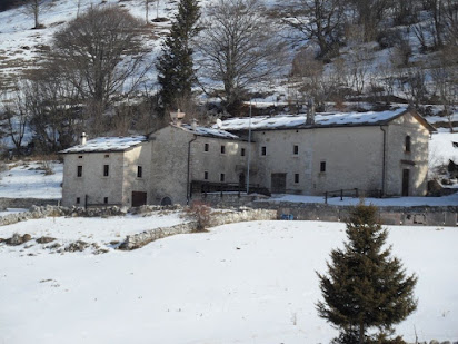Continuando la passeggiata verso il fondo della valle raggiungiamo il versante del Monte Spiazzoletti e ci troviamo in questo ampio pianoro, ora innevato, denominato il “pra’ di Bertoldo”, il luogo appunto dove la leggenda narra che Bertoldo avesse qui la sua dimora.
